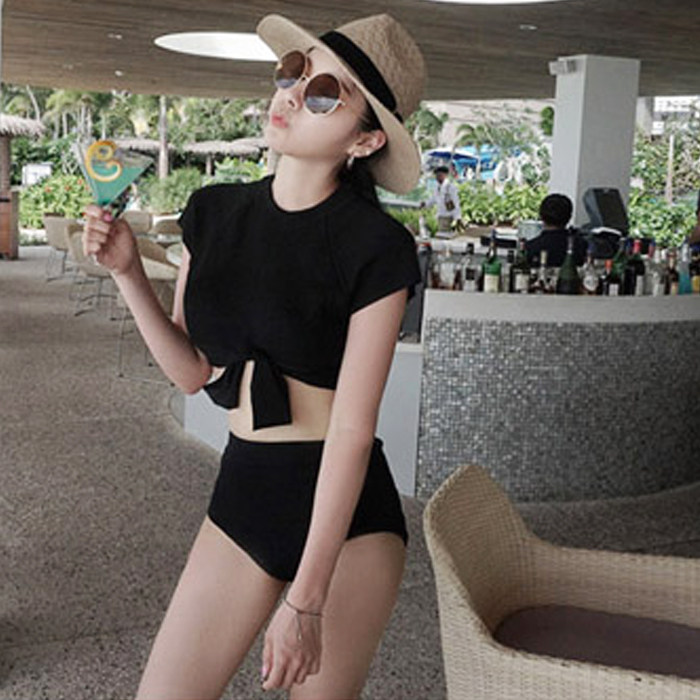 Da Cousins Bikini Sexy Black Knotted With Cuff Jacket High Waist Triangle Pants Two-piece Swimsuit Bikini