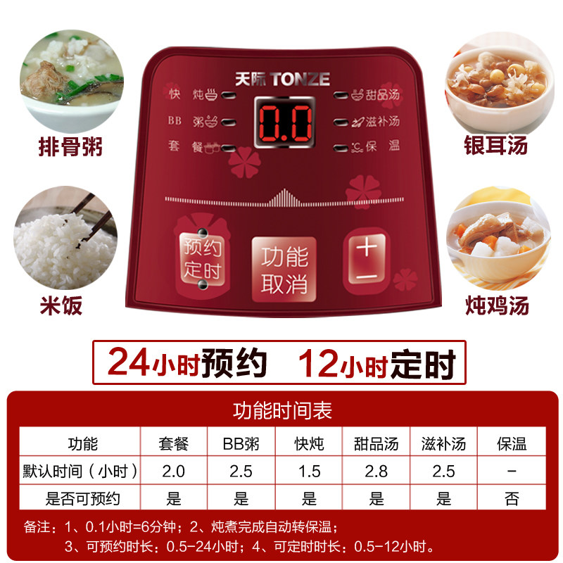 Tonze skyline DGD22-22DWG electric saucepan stew water-stop stew white porcelain electric saucepan ceramic fully automatic saucepan