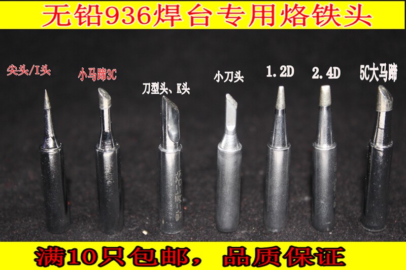 10 free shipping 936 soldering iron head lead-free special tip sharp mouth knife head horseshoe curved tip 936 soldering station universal