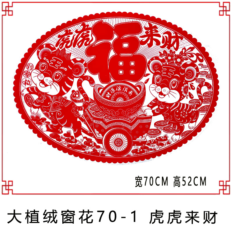 Oval New Year's goods painting large electrostatic flocking window flower paper-cut blessing character TV wall window stickers