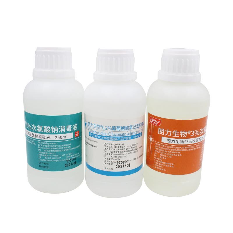 1% sodium hypochlorite disinfectant 3% sodium hypochlorite disinfectant 2% glucose acid chlorhexidine bacteriostatic liquid