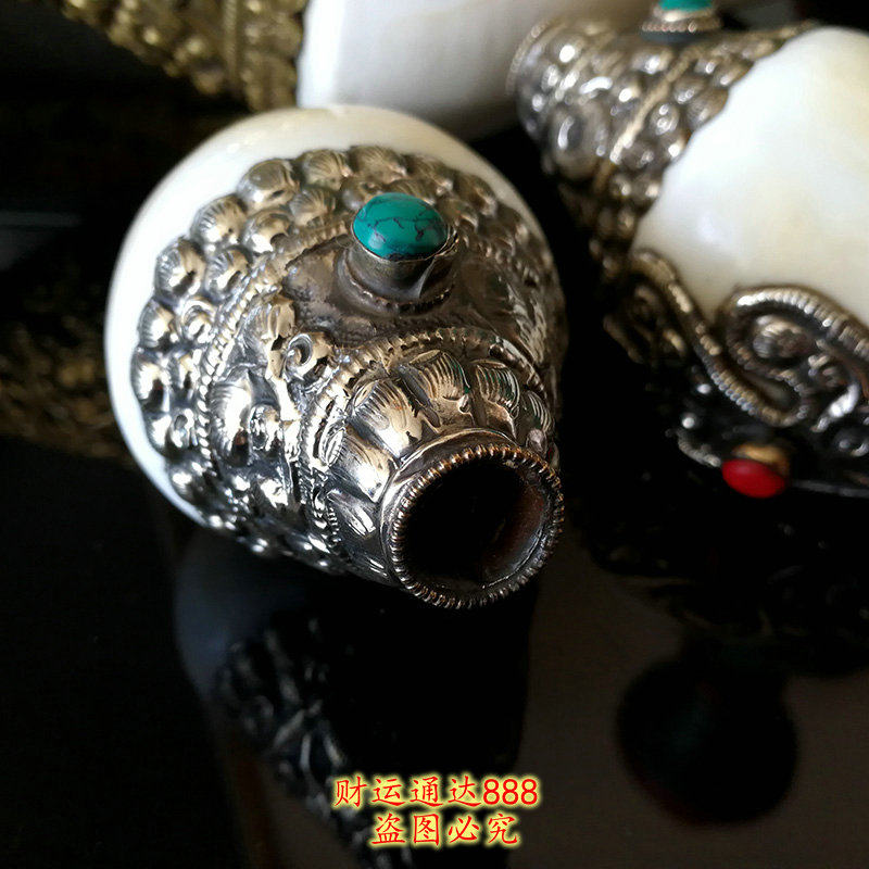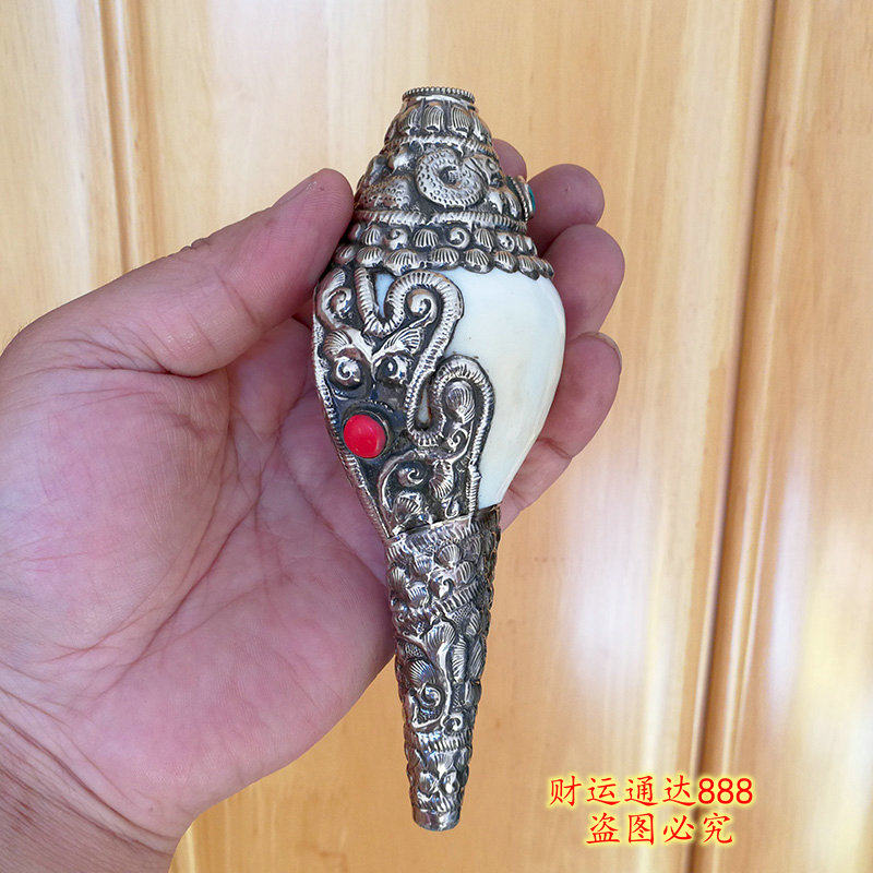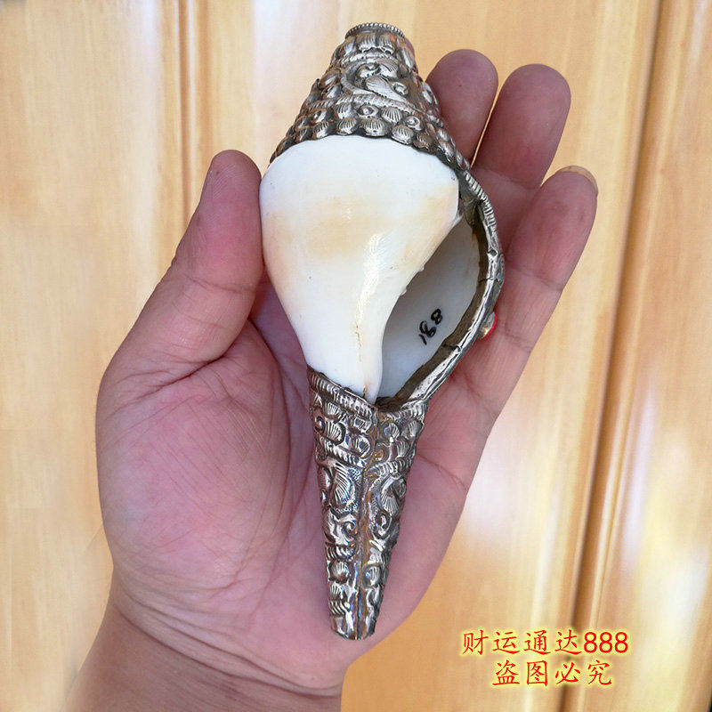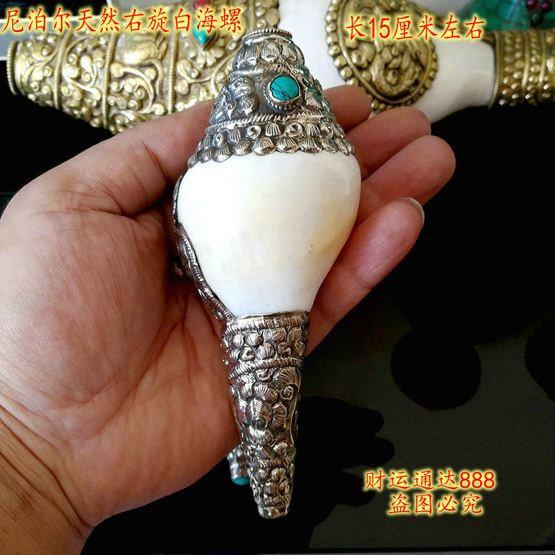 Nepal imported Indian right-handed natural white sea snail encased in silver snail length of about 15 cm