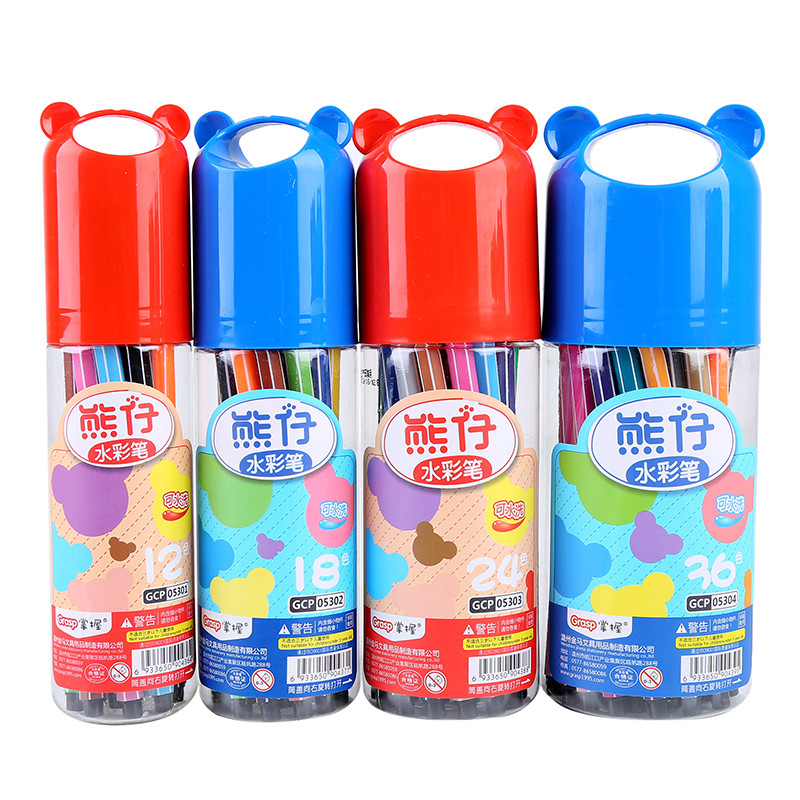(2 barrels) Mastery of watercolor pen 12 color 24 color 36 color slim rod watercolor pen washable children's drawing pen tip (red packaging changed hair pink) mind misog