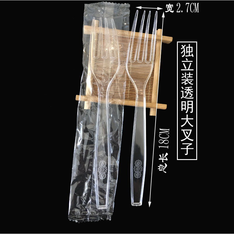 Individually packaged disposable plastic fork 7 inch cake western food knife and fork 18CM transparent fruit tea salad large fork