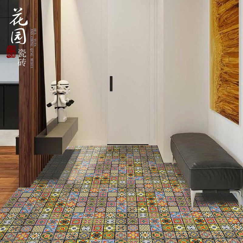 Tile small flower brick flower tile floor tile hand-painted retro powder room Mediterranean style staircase 300 color wall tiles