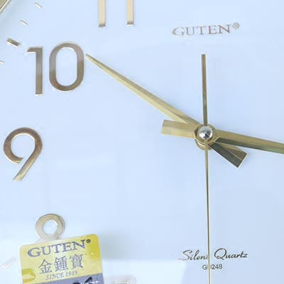 Golden Treasure round clock Office living room European modern simple bedroom Golden border Gold 12 inch silent wall clock
