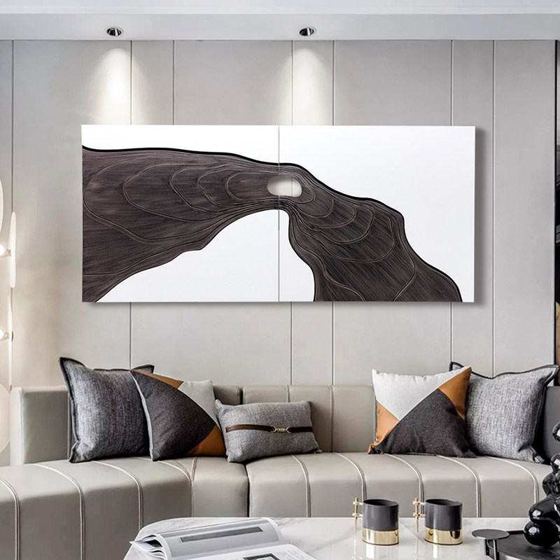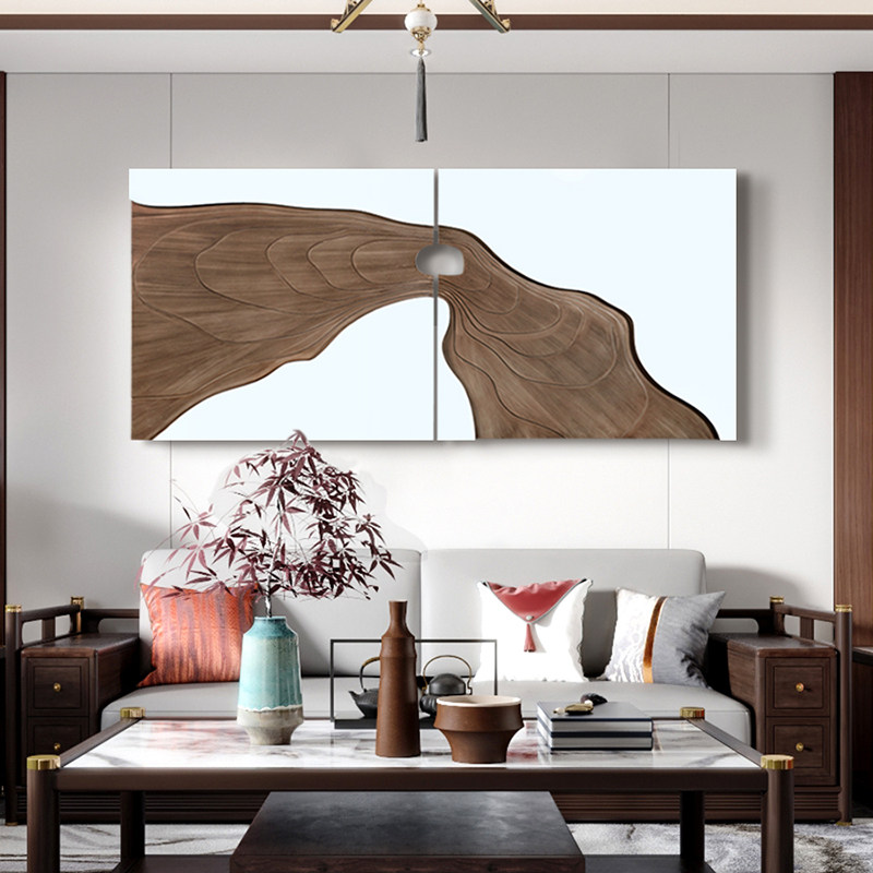 New Chinese Living Room Sofa Background Wall Decoration Painting High-end Atmosphere-like Relief Three-dimensional Fresco Wood Sculpture Hanging Painting