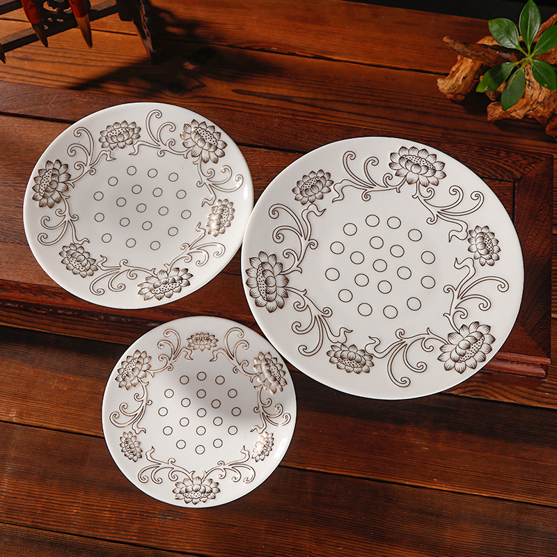 Buddha supplies Guoshun ceramic fruit plate depicting gold relief lotus fruit plate white for fruit plate Buddha hall for plate fruit basket