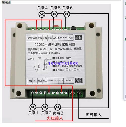 220 volt six-way 6-way wireless remote control switch AC 220V motor forward and reverse lamp access controller