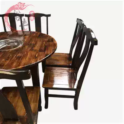 Solid wood hot pot tables and chairs Round tables Carbonized solid wood matching hot pot tables and chairs Food stalls Dining tables and chairs Hotel tables and chairs