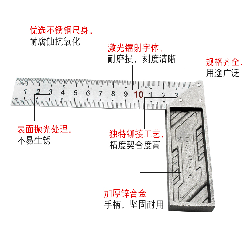 Great Wall Seiko stainless steel angle ruler high precision zinc alloy thickened right angle ruler triangle ruler 150 300 500mm