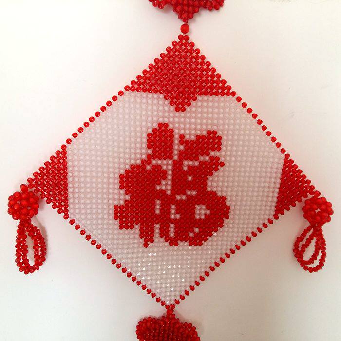Pure Hand Woven Watermelon Bead Bifacial Fumento Hall Pendant for Spring Festival Festive Pendant Home Wedding Celebration Decorations