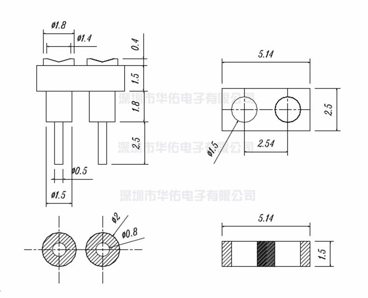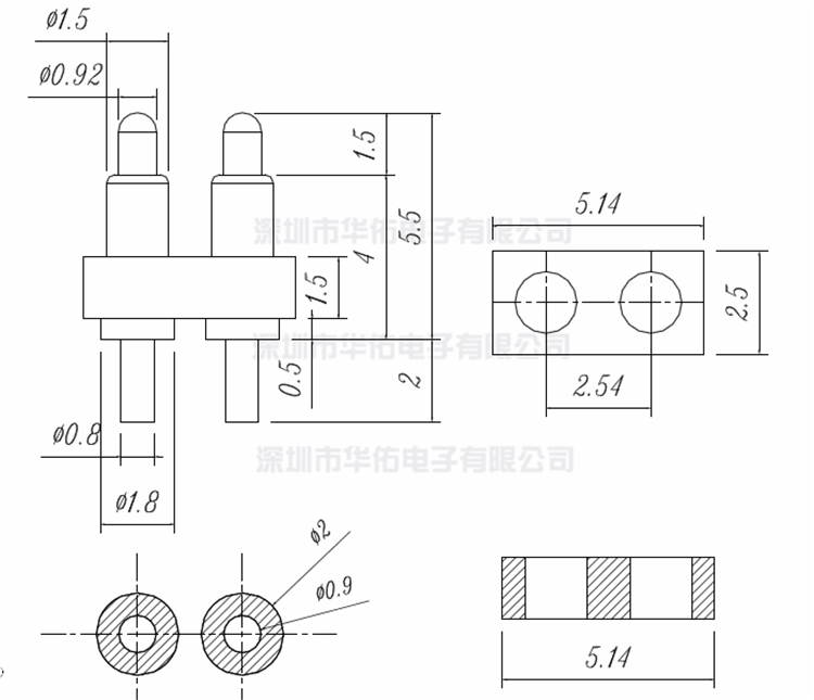 pogopin spring thimble Antenna thimble 2P-2 5mm battery connector Mold test Gold plated conductive needle