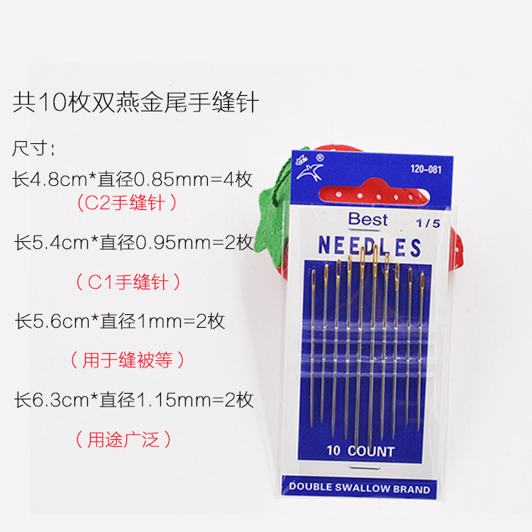 Double swallow golden tail hand sewing needle Sewing needle Big eye sewing quilt needle Export type sewing leather needle