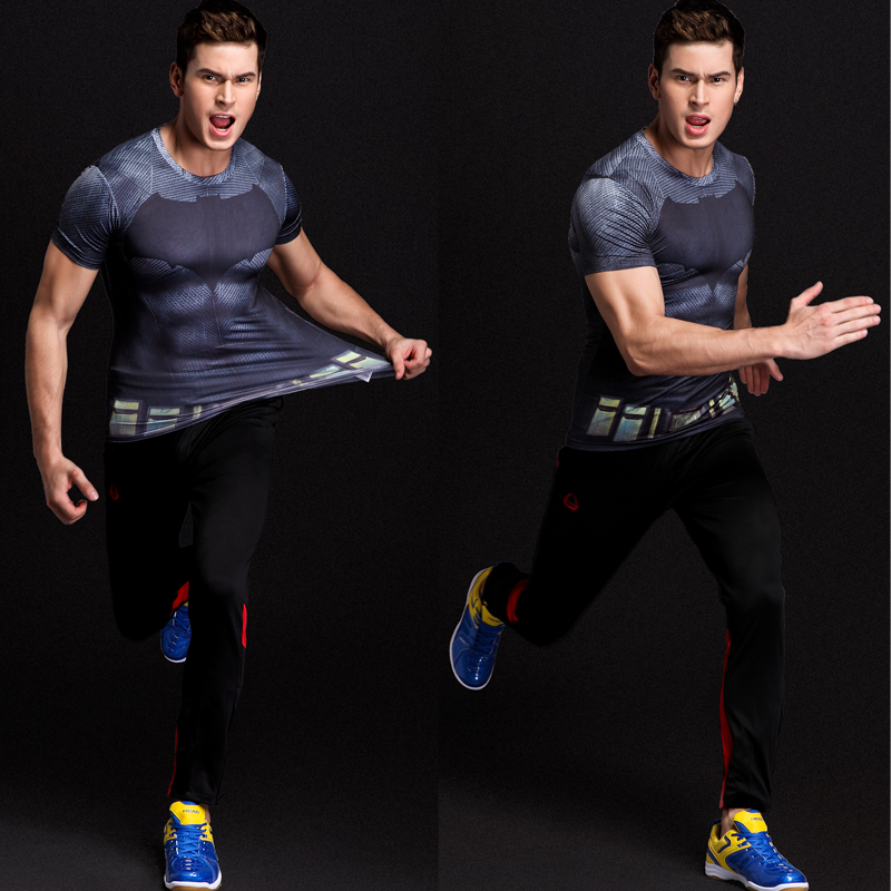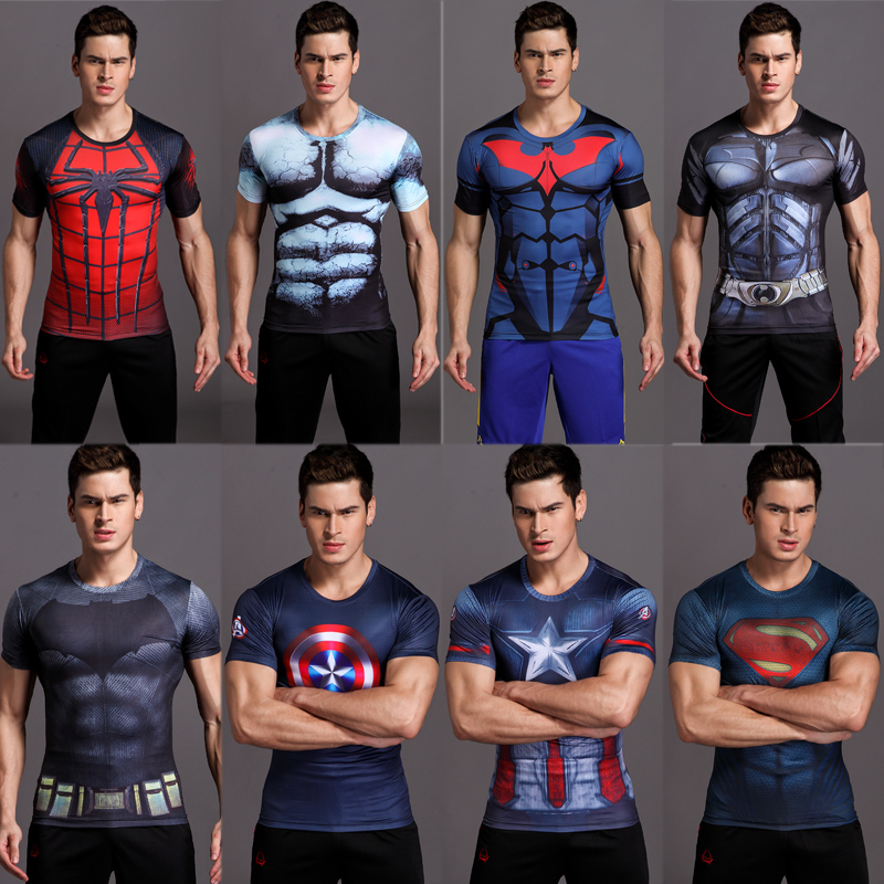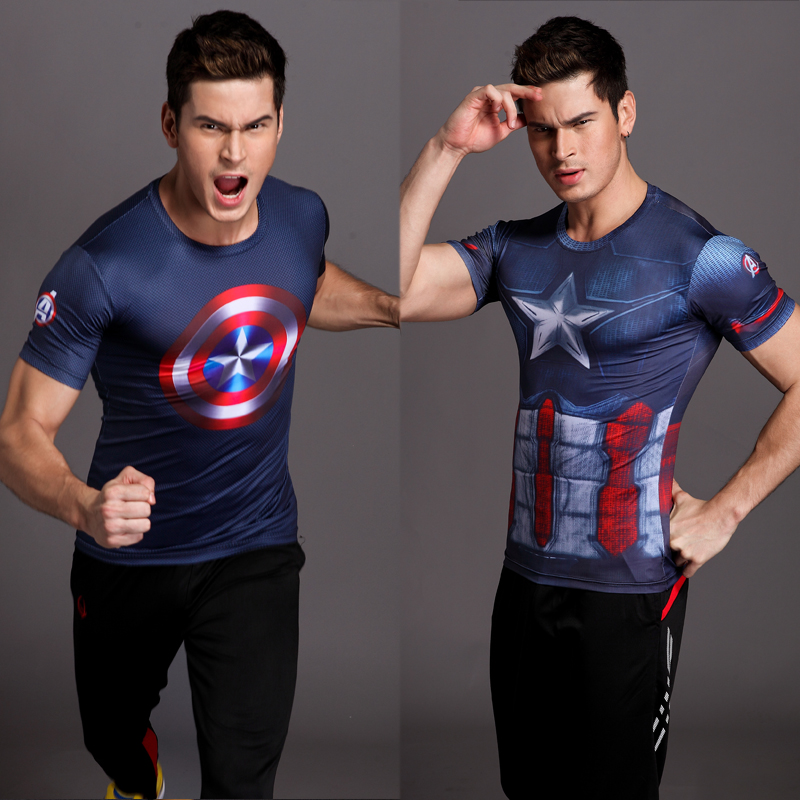 Avengers League Tight Fit American Captain Sport Short Sleeve Spider man bodybuilding Superman fitness men and women T-shirts
