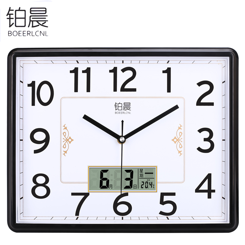 Platinum morning living room silent hanging watch perpetual calendar wall clock simple rectangular quartz clock office large liquid display clock