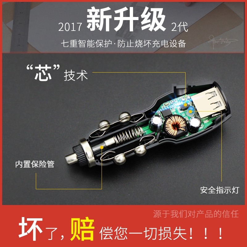 Tachograph power cord connecting cable GPS navigation charger Multi-function USB cigarette lighter car charger plug