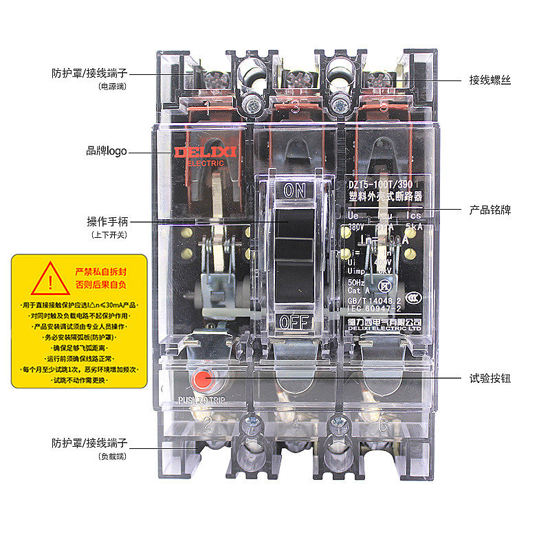 Delixi Transparent Molded Case Circuit Breaker DZ15-40T 100T 3901 40A63A100A Air Switch
