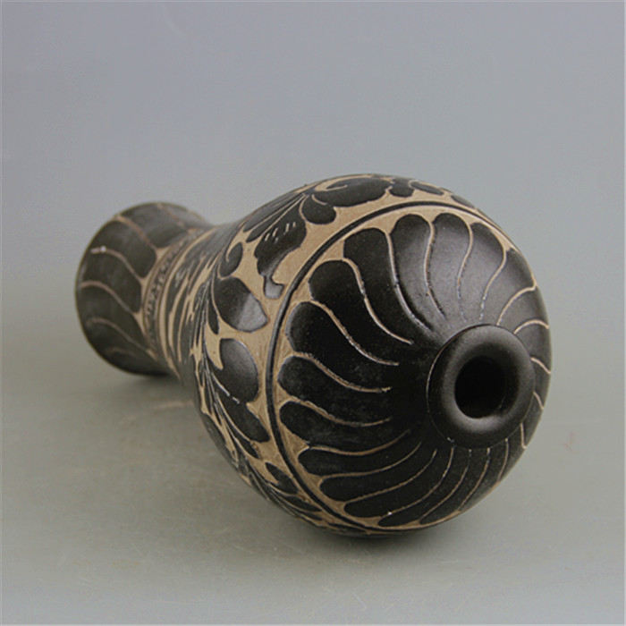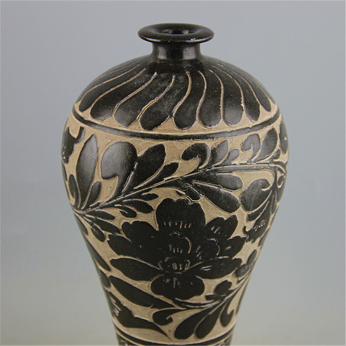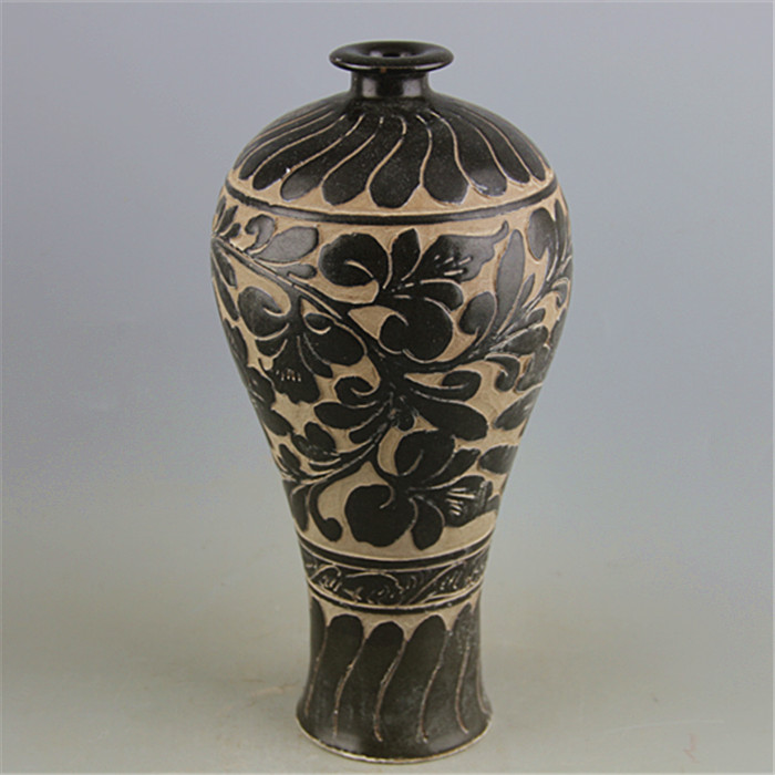 Song Dynasty Cizhou Kiln Black Glaze Handmade Porcelain Engraving Plum Bottle to Make Old Imitation Unearthed Ancient Porcelain Antique Antique Collection Dendings