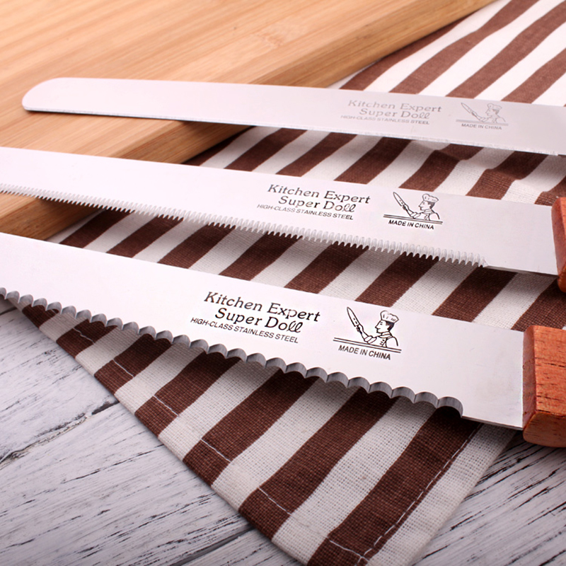 Kitchen Home Baking Bread Slicing Knife 10 Inch Wood Handle Stainless Steel Fine Tooth Cake Knife Serrated Knife West Point Knife