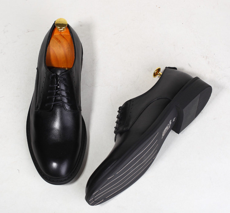 Workplace upstart Italian leather round toe business formal leather shoes wedding banquet men's shoes office derby shoes