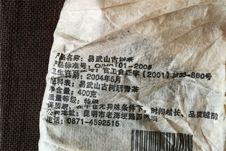 2004 Haixin Hall Yi Wushan Ancient Tree Tea 400 gr Tea cake Old raw tea