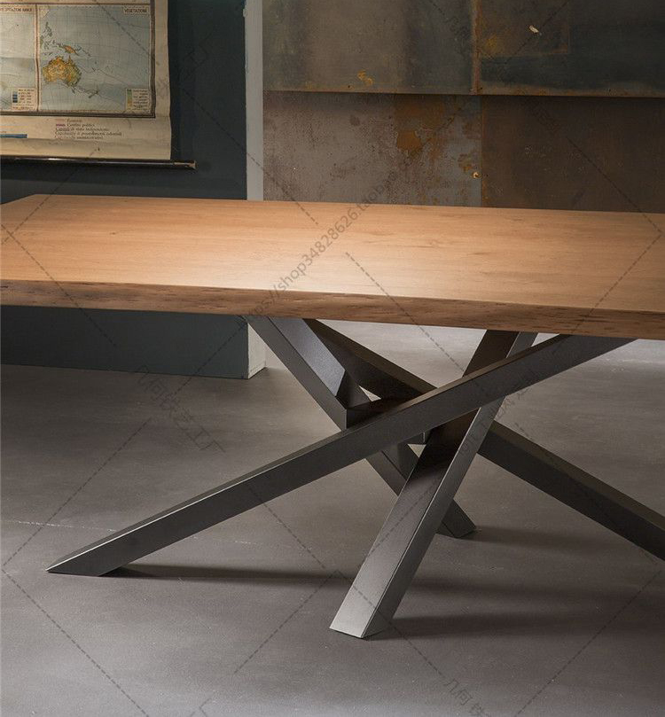 loft wrought iron conference table long table solid wood desk American industrial style dining table rectangular workbench negotiation table