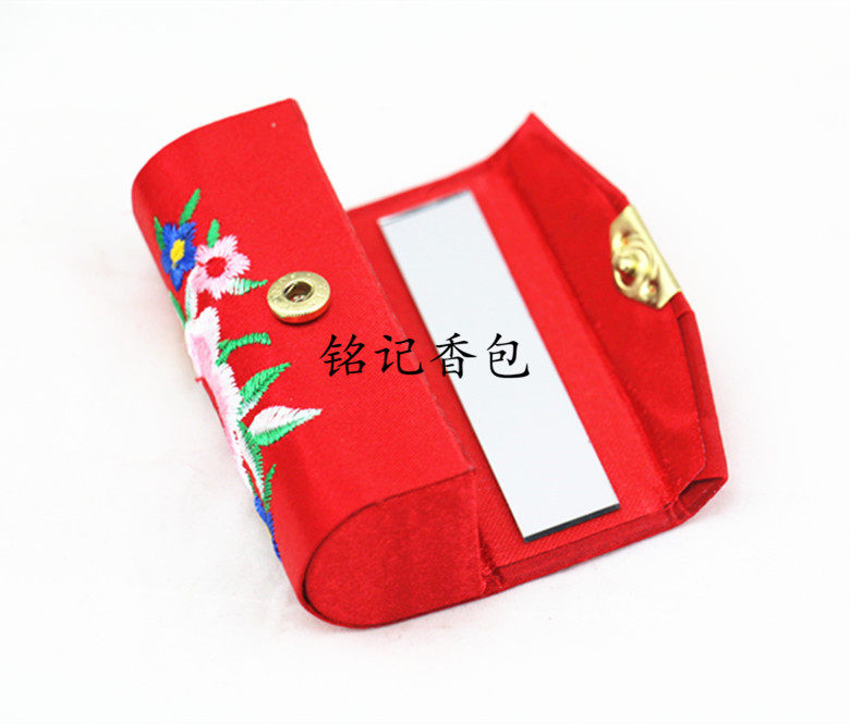 10pcs Chinese Embroidered Lipstick Box Lipstick Box with Mirror Gift Box Jewelry Storage Box Small Cosmetic Box