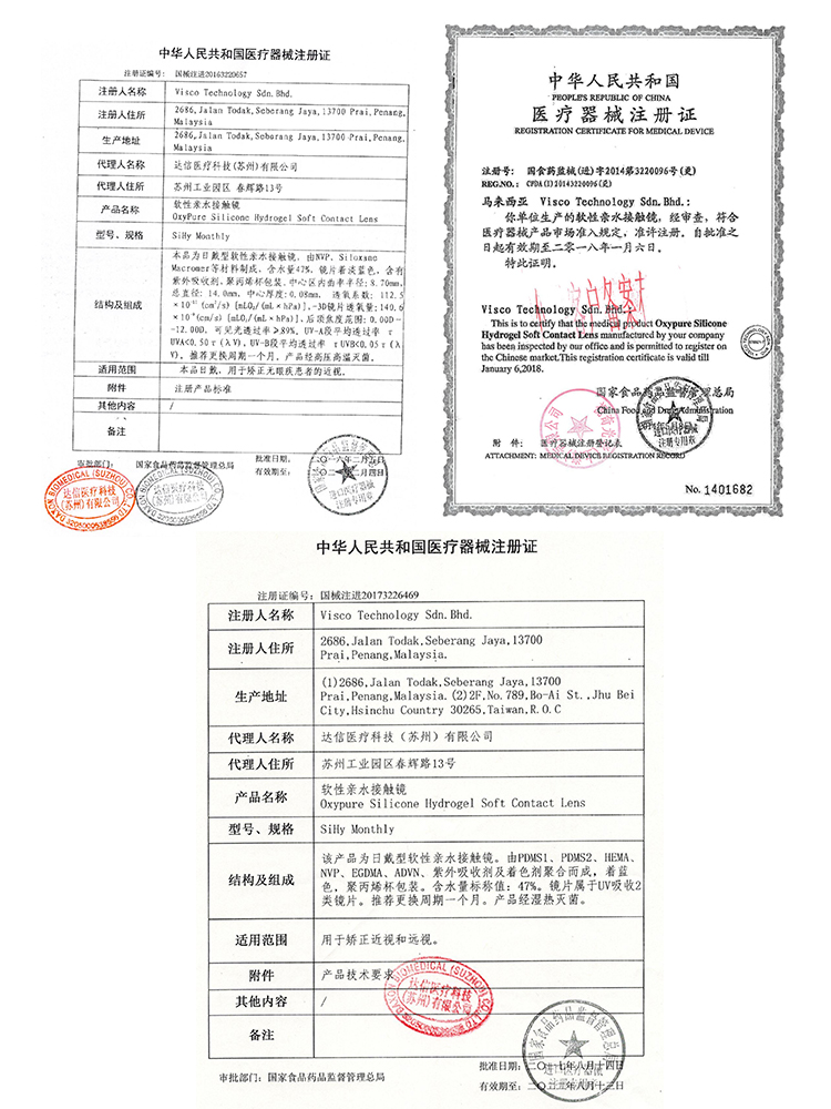 Contact lenses and care solutions Trade name: