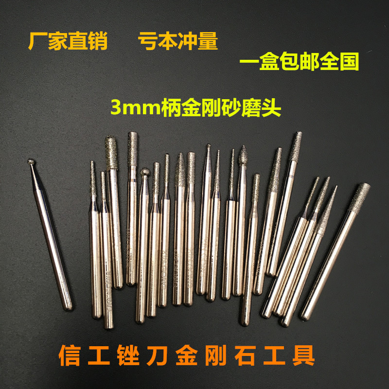Xingong diamond grinding head 3mm handle diameter boxed spherical cylindrical conical diamond electroplating grinding head grinding needle grinding head