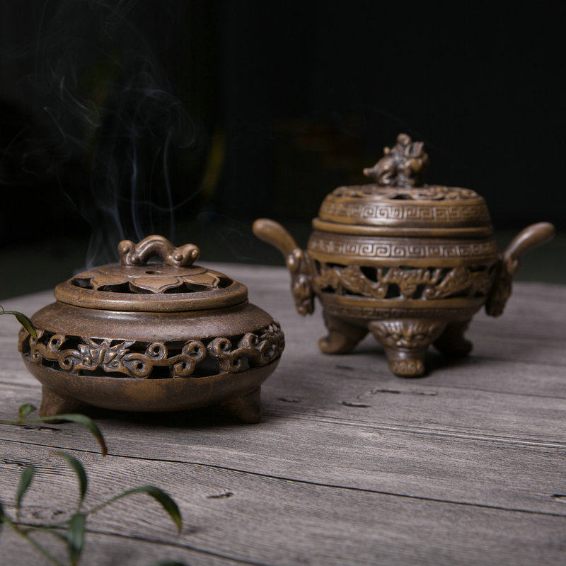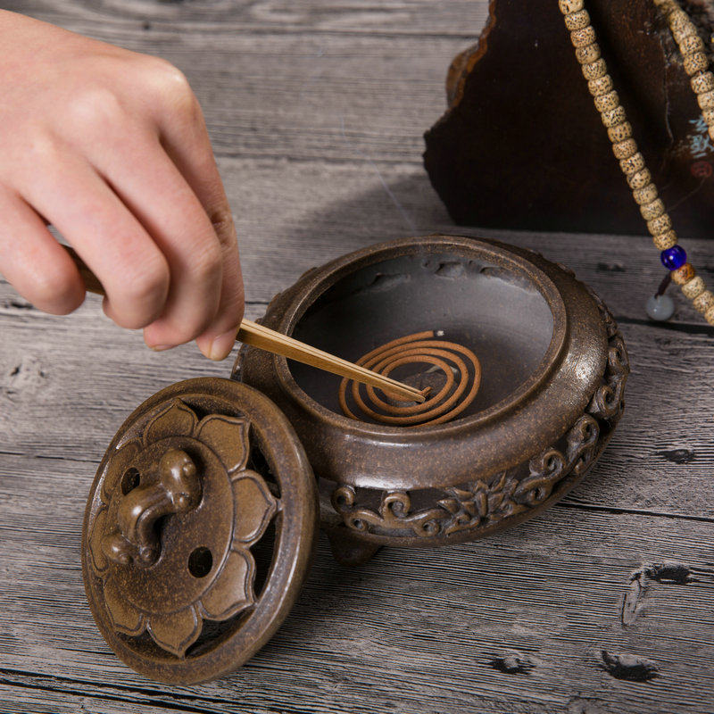 Weiyang bamboo tea purple sand Antique incense burner plate Incense burner Ceramic lotus agarwood tower dedicated to the shrine incense burner to ward off evil spirits