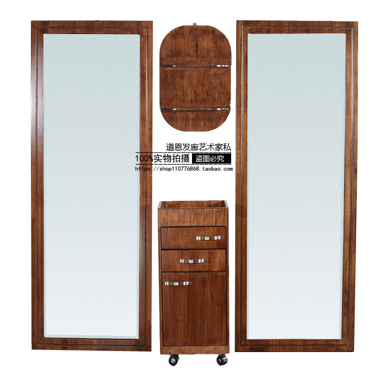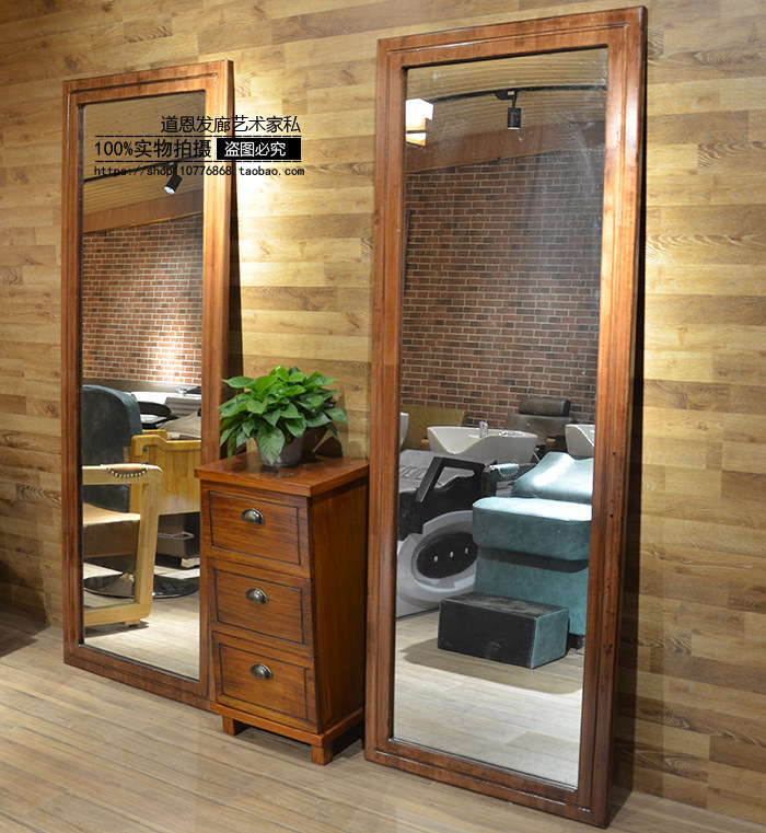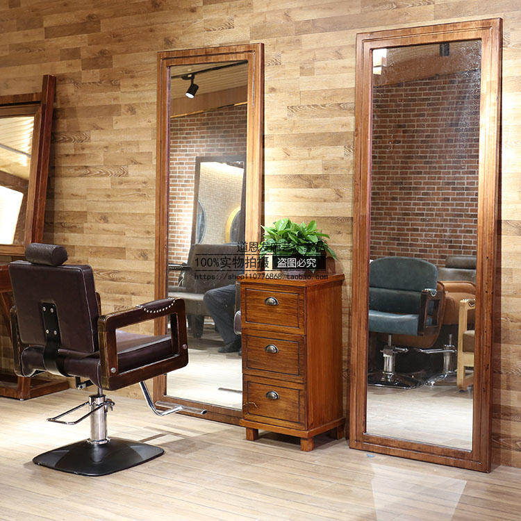Hair care chair Hair care shop mirror table Hair salon special hair mirror floor-to-ceiling single-sided solid wood full-length mirror Hair cutting stool vintage