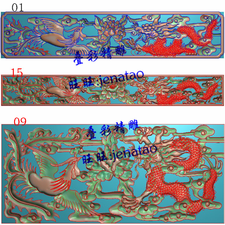Dragon Phoenix Shelf Bed Peony Dragon Phoenix Door Frame Engraving Picture Relief Map Grey Plot Fine Sculpture JDP Cable