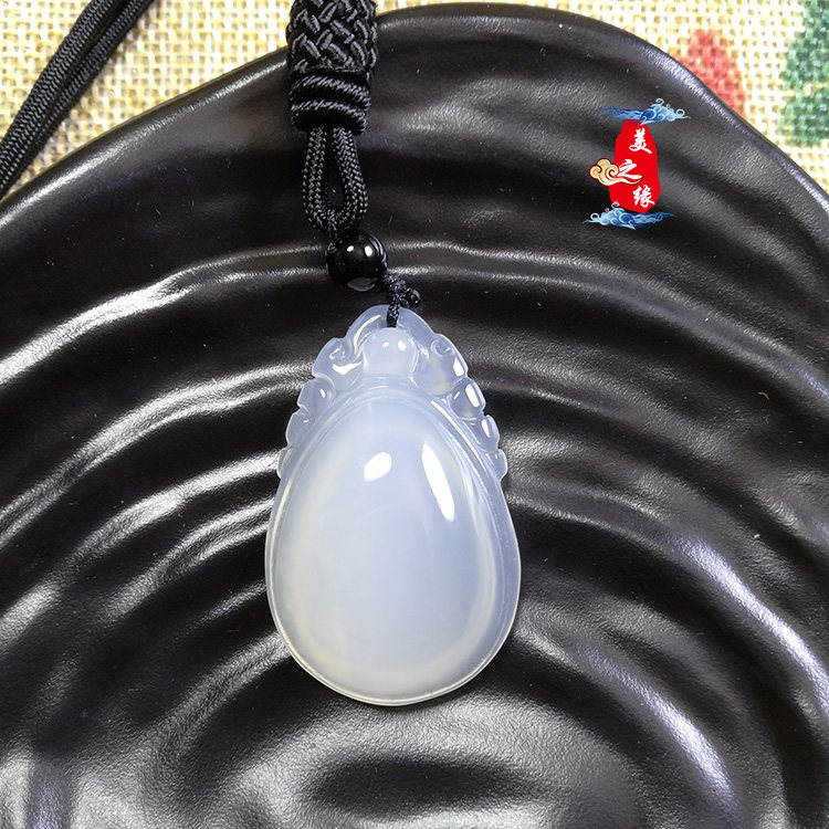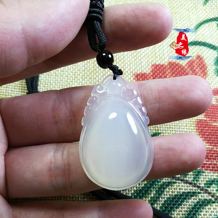 The edge of beauty Natural peace charm Chalcedony ice blessing Melon Peace blessing men and women lovers pendant necklace pendant Jade pendant