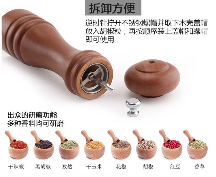 Exported German pepper mill grinder imported beech rotary commercial stainless steel steel core manual seasoning bottle