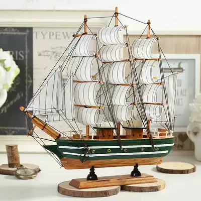 Mediterranean wooden sailing boat model ornaments solid wood simulation Craft boat bar decoration handmade gifts