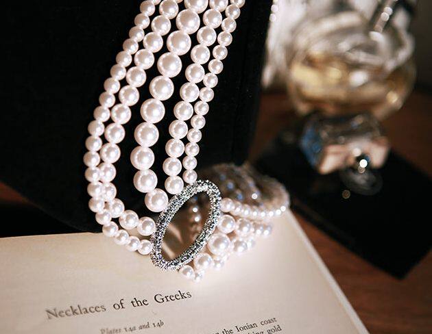 South Korea Elegant Ladies Temperament Retro Herbon Wind Romantic Inlaid Drill Multilayer Pearls Hollowed-out Lock Bone Necklace
