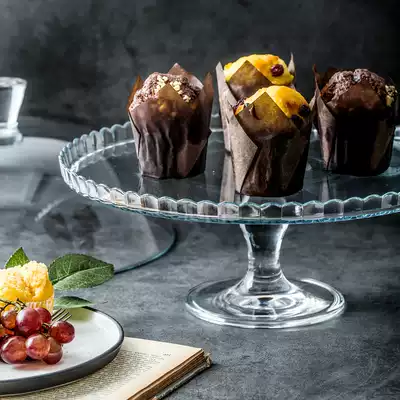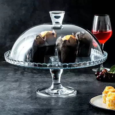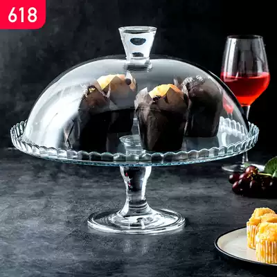 Imported Pasha large French unleaded glass cake pastry transparent tall fruit dessert tray with cover