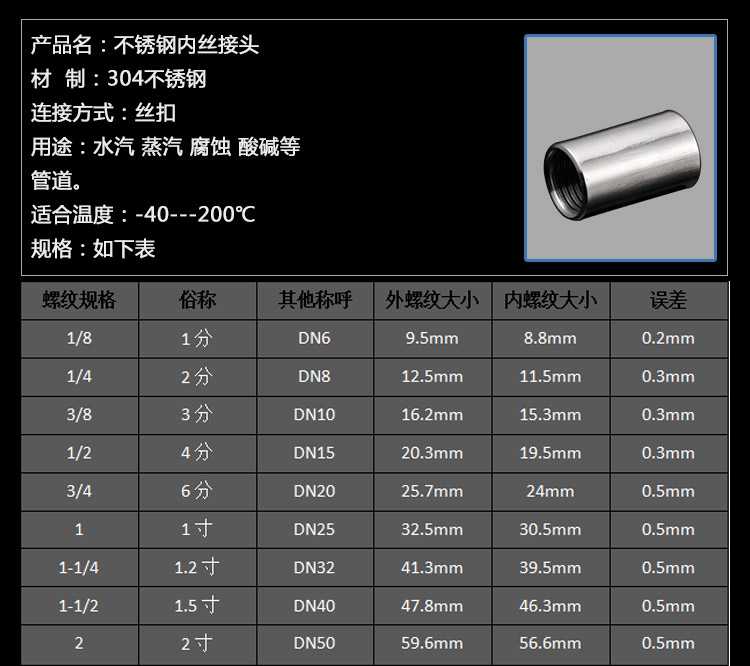 304 stainless steel pipe can be processed long light inner wire tank tower welding inner thread upgrading direct external joint accessories