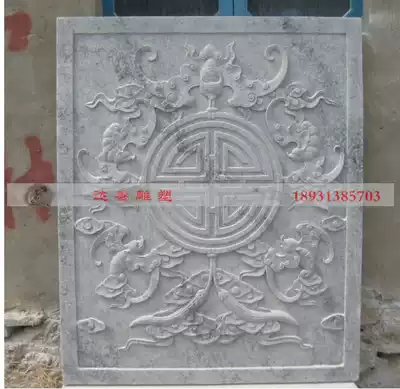 Qingshi rich peony relief custom courtyard welcome wall marble relief factory processing flower stone carving products