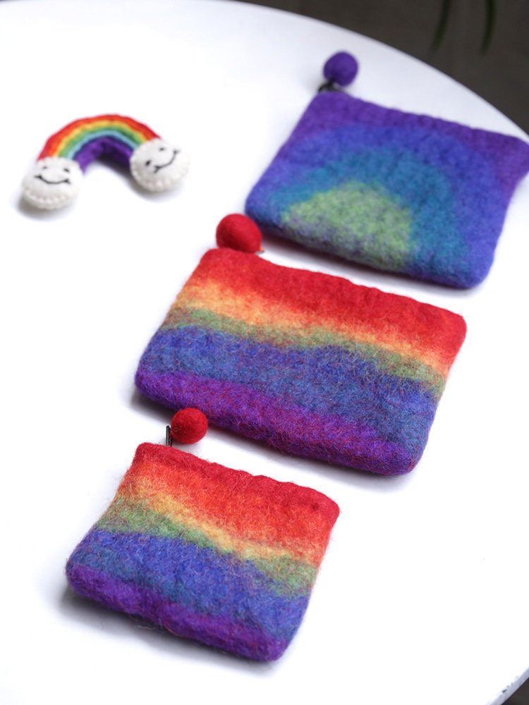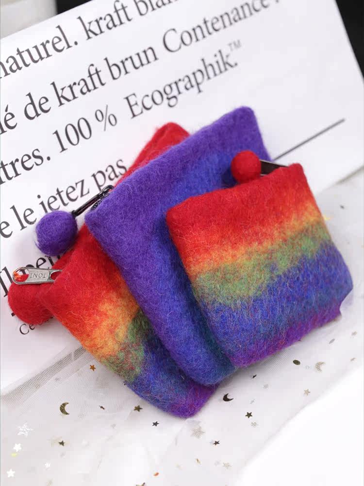 Nepal Artisanal Wool Felt Wool Felt Rainbow Zero Wallet Cute Cashier Bag Zero Wallet Mini-Card Parent-child