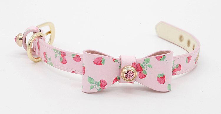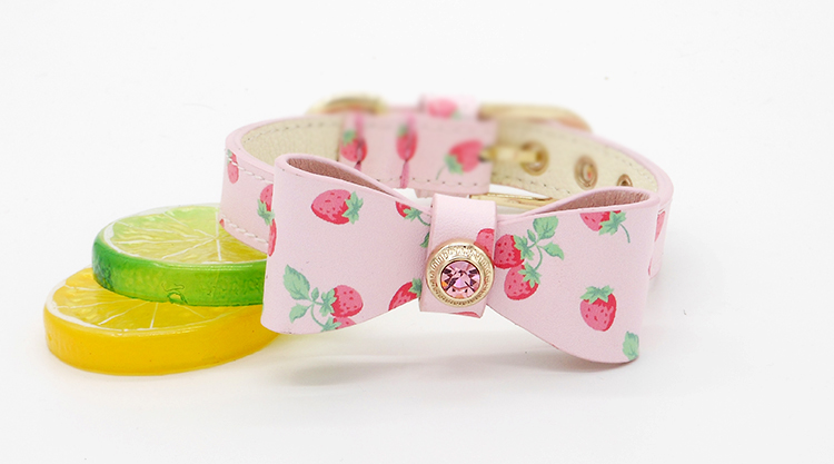 Strawberry Pattern Big Bow Archie Leather Pet Collar Teddy VIP Schnauzer Without Traction