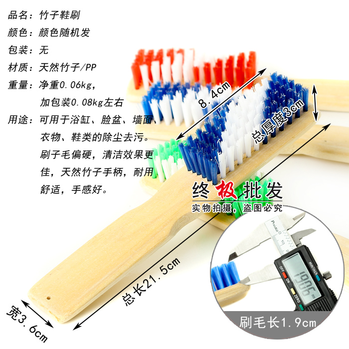 Thickened bamboo shoe brush with a thick layer of