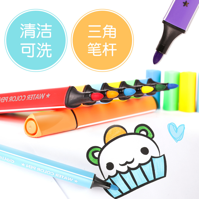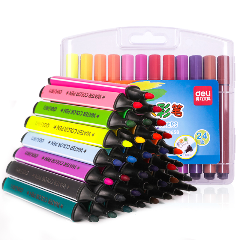 Deli 24 color triangle pole watercolor pen set primary school children's baby kindergarten with drawing graffiti painting hand paint pen watercolor brush large capacity color pen drawing pen set