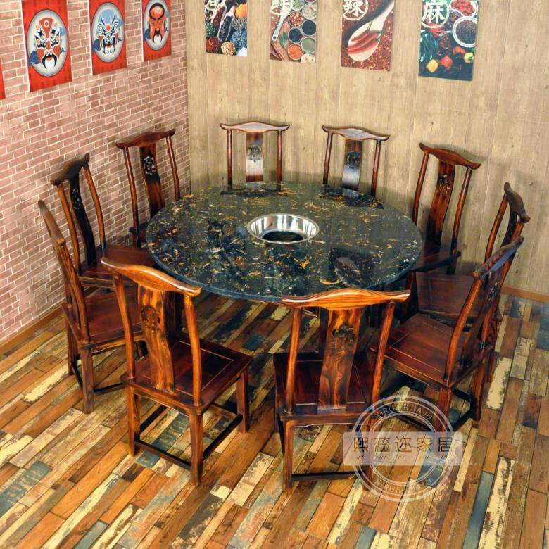 Manufacturer direct decarbonated solid wood marble gas hot pot table cabinet hot pot table and chairs combination