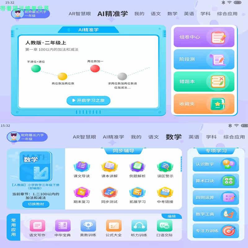 Student tablet score improvement learning software primary school junior high school synchronous learning bully K12 education weak point learning push