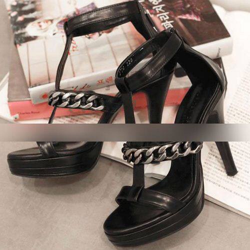 Korean handmade custom small European and American style street style fashion thick chain waterproof platform wrist strap high-heeled sandals