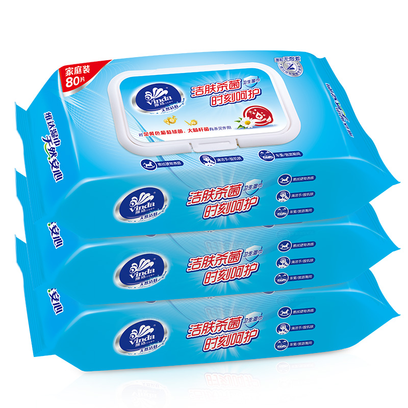 Vinda wet wipes Antibacterial 80 pumping 3 packs of 240 tablets Household alcohol-free and fragrance-free hand wipe private parts clean private parts sex wet wipes