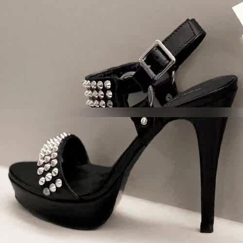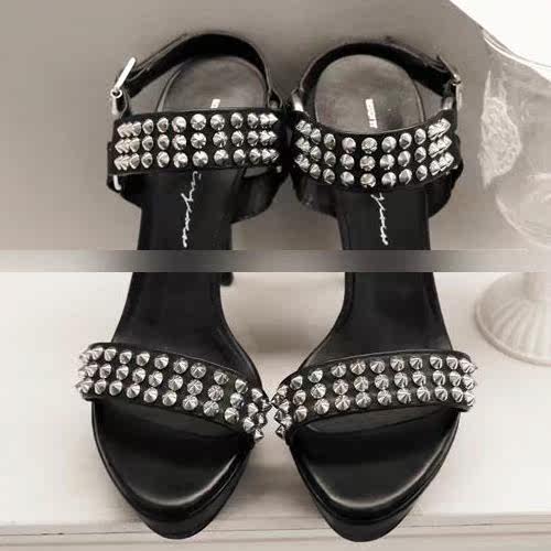 Korea Artisanal Custom Rivet Punk Rock Punk Wind Waterproof Bench Sexy Ultra High Heel Sandals