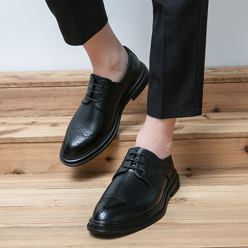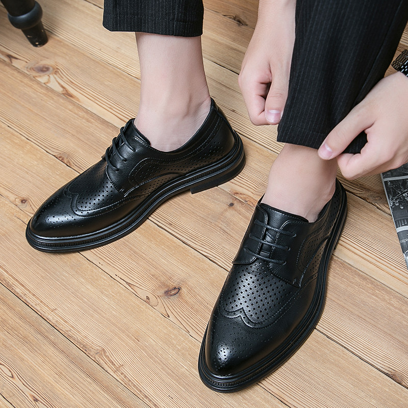 Brogue Carved Leather Shoes Men's Thick Bottom British Style Leather Business Formal Casual Summer Hollow Breathable Men's Shoes